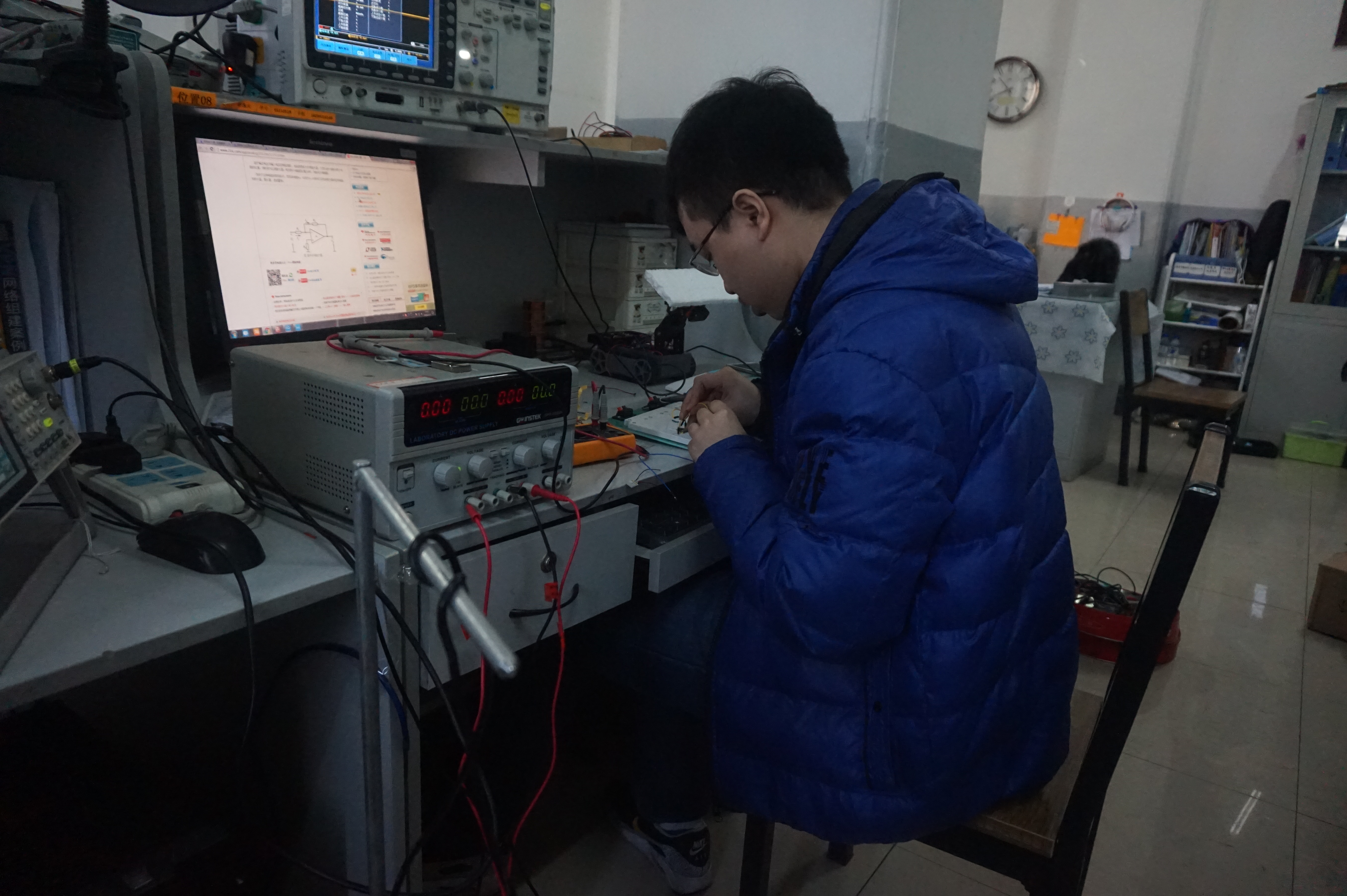 “216+开放实验室”以及电子科技协会组建的科技创新团队计划于2016年1月15日-25日开展寒假专业社会实践活动。2016年1月16日参加实践活动的队员按计划分别学习了动态信号分析仪的原理与使用,频域测量方法以及万用表的使用。