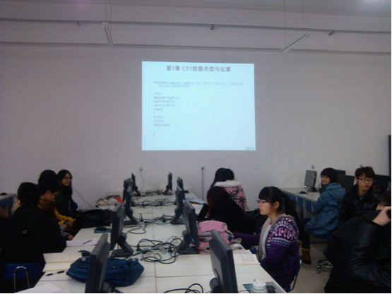 下午13:30时,讲座正式开始。蔡老师首先利用投影仪放映幻灯片给同学们演示介绍了单片机的相关基础知识。接下来,蔡老师讲到了本次讲座的重点——51单片机C语言入门。每讲完一个知识要点,蔡老师都会举出几个实际例子来帮助同学们加深理解。同学们听得都很认真,一边思考一边做记录。对于同学们提出的疑问,蔡老师耐心细致地进行讲解,现场气氛轻松活跃。随后,蔡老师为大家讲解了另一个重要内容——步进电机控制。蔡老师利用视频、动画演示、结合文字解说等多种方式进行教学,生动有趣。下午15:00时,本次讲座圆满地落下了帷幕。