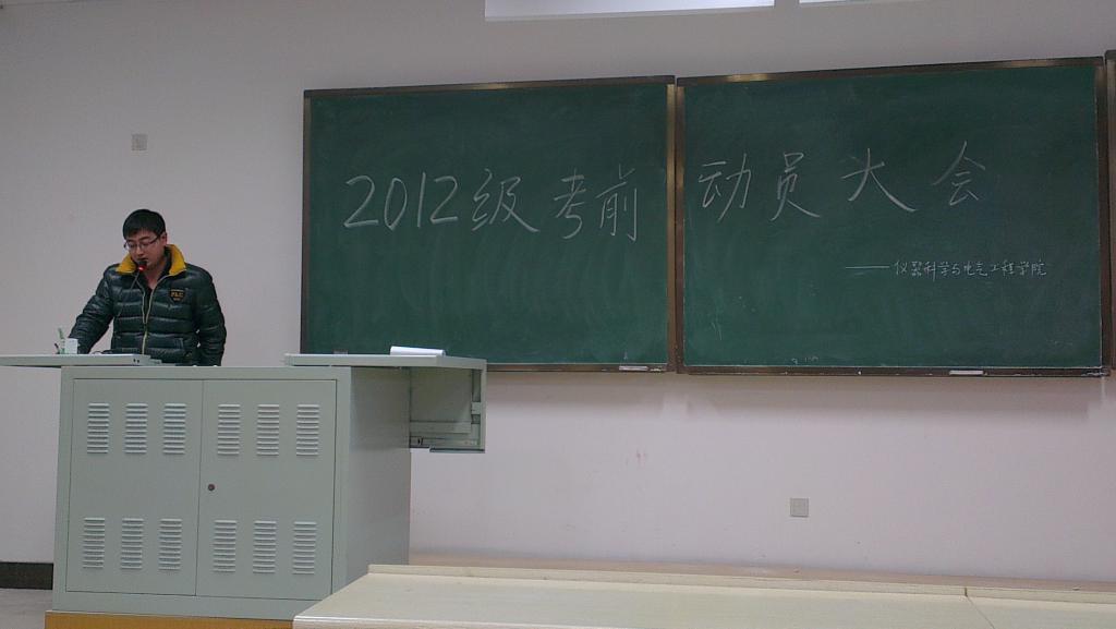 于2012年12月7日13:30时在中心校区李四光楼304室组织了2012级期末考试动员大会。本次活动由2012级辅导员蔡印老师主持,仪电学院2012级全体同学参加了此次会议。