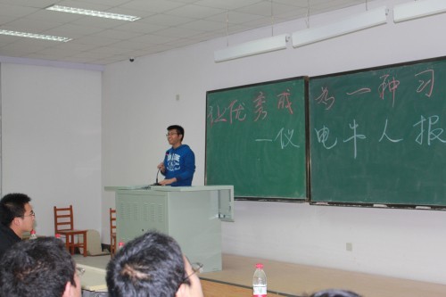 2011年度“十佳大学生”黄廷哲同学、免试推荐清华大学研究生(直博)的2009级王春泽同学及免试推荐哈尔滨工业大学硕士研究生的林展汐同学作为嘉宾,为学院2012级全体新生做了一场别开生面的事迹报告会。