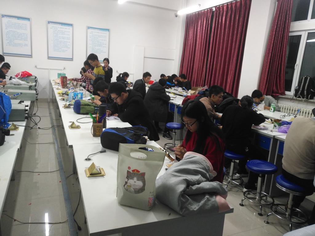 中心校区李四光实验楼447实验室进行了面向2017级新生的第四期基础培训。培训内容包括掌握呼吸灯电路原理并自主完成电路焊接以及对第三次培训作品的检测验收,由女同av