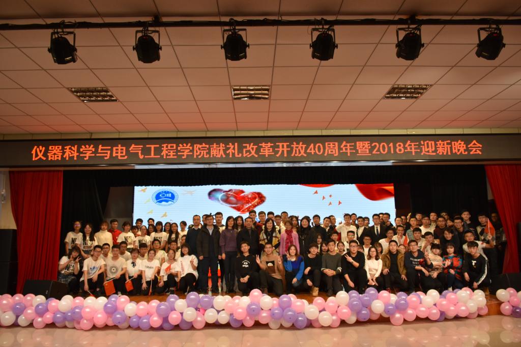 年华似水,树树花开花落;时光如梭,日夜斗转星移,又是一年迎新时。随着开场舞《Have a Good Time》音乐响起,仪电的俊男俊女们正式拉开了晚会的序幕,他们用节奏感十足的舞曲串烧点燃了现场观众们的热情,随后仪电学院第十四届团学联学生干部更为新生带来了一支《狂拽激光舞》,光随影动,人舞交融,台下掌声、欢呼声、快门声此起彼伏,晚会即刻进入高潮。小品《我只想睡个好觉》,通过宿舍睡眠问题告诉同学们如何处理好与舍友之间的关系;诗朗诵《乘风破浪四十年》,七位同学慷慨激昂的朗诵向大家展示了改革开放的40年既是中国不断走向辉煌的40年,也是不断彰显民族自信的40年,更是不断提升大国形象的40年;歌曲《飘向北方》,两位同学完美的诠释了“说唱与流行碰撞,少年行囊在肩上”;相声《中国之声》,搞笑而又深刻的讲述了改革开放四十年来中国在世界舞台上不断发展壮大,以一个负责任的大国形象积极为世界提供“中国方案”,让世界倾听“中国声音”;乐器《梁祝》,中西乐器的完美结合,悠扬动听;歌曲《南山南(吉大版)》,将大家在吉大的美好邂逅到对未来的约定,用歌声唱了出来;走秀《科技之光》,将学院学生制作的优秀科技作品展示给大家,紧跟着来了一段《机器人舞蹈》;舞蹈《Dope》,跳出青春的节拍,跳出时代的风采;歌曲《歌曲串烧》,四位歌手带来了动听的歌声;小品《上学那些事》,同学们精湛的演技让观众捧腹大笑,节目最后展出的历届学院优秀学子更是让在场的每位仪电人感到自豪;合唱《春天的故事》,重温那春天的故事,感受祖国的昌盛,全程气氛更是达到了高潮。最后,领导嘉宾与演职人员登上舞台合影留念,至此,晚会圆满落幕。