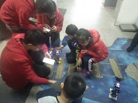 实验室全体成员热情地欢迎并接待了各位小朋友以及家长,并向大家简单介绍了实验室成员组成、发展现状和发展方向。首先,实验室成员向各位小朋友和家长们展示了历年竞赛优秀作品,并予以简单介绍。各位家长对实验室取得的成就表示赞扬,接着在实验室成员的陪同和指导下,协助小朋友们进行了基础焊接电路板的活动,小朋友纷纷积极主动参与焊接。随后,实验室成员为小朋友献上了双足机器人舞蹈,向小朋友展示了科技的魅力,同时也是对他们的到来表示欢迎。最后,由实验室成员带领小朋友展示了3D打印机、光雕机、刻板机等仪器设备,并介绍了相关工作原理,进行了简单的操作,增加了小朋友对科技的了解,激发了对科技的兴趣。这些设备吸引了小朋友的目光,令他们惊叹不已,家长们也表示“这一次活动来的真值!”。