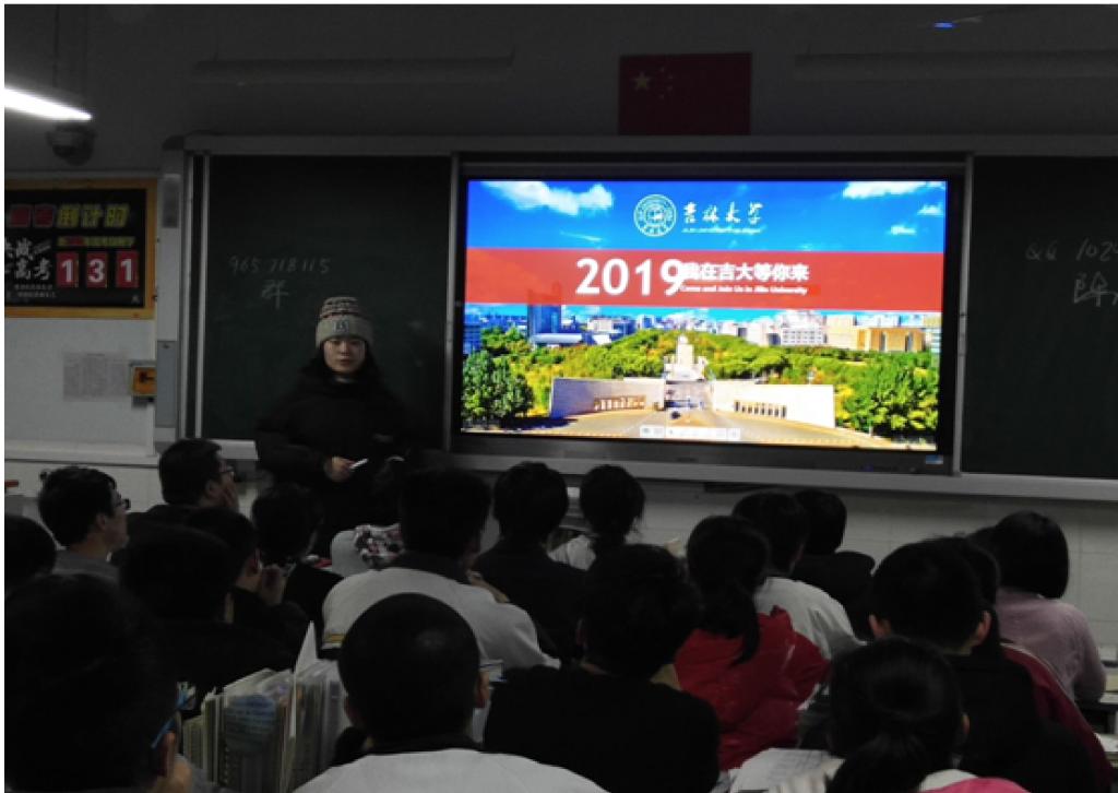 的闫腾飞同学这次来到了自己的母校——怀仁一中进行宣讲,让更多的学弟学妹能够更全面的了解到吉大各方面的信息。宣讲大致分为吉大基本信息和校友介绍、各校区介绍、校园设施介绍、专业就业介绍等五个方面。