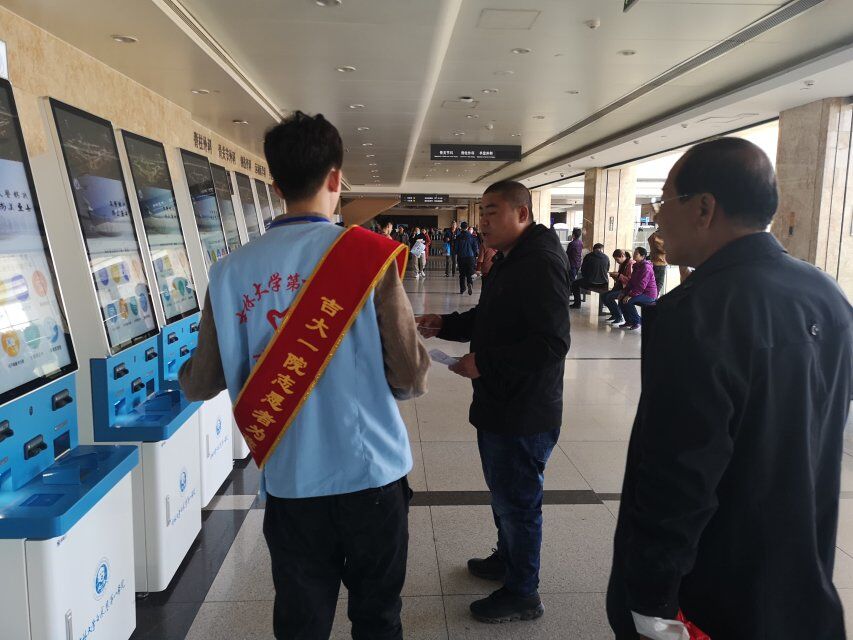 4月22日至4月25日,志愿者们继续前往吉大一院进行义务导诊志愿服务。经过简单而周密的培训和详细的任务分配后,志愿者们被分配了不同的任务,不同的科室。本次活动主要服务内容有:门诊导医、门诊分诊、病人服务中心陪检、急诊外科全程陪伴等。志愿活动中也经历了很多的困难,因为志愿者们都大学生,对吉大一院的科室位置等都不是很熟悉,但是牵手协会的志愿者们没有丝毫的抱怨与不耐烦,仍然耐心的帮助患者完成就诊工作。美好的时光总是短暂的,不知不觉一上午的时间过去了,虽然是很忙碌的一上午,但是为患者导诊的热情使得志愿者们都没有觉得疲惫。