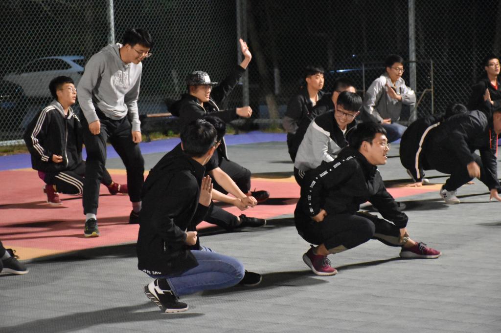 此次三路长拳队伍由来自2018级的30名同学组成,长拳教练由2017级同学担任。训练工作首先是由三路长拳教练——刘明鑫同学和曲德馨同学向参加本届运动会长拳比赛的同学示范动作,同时对动作细节进行详细的讲解。然后,教练将动作分解后,一步一步指导给参赛同学,力求每个同学都能将动作做到标准。在保证动作标准的同时,同学们还要时刻配合队伍的其他同学,保证队伍整齐划一。虽然夜晚天气寒冷,但同学们依然精神饱满,毫不懈怠地进行着长拳训练。最后,教练们指导同学们排练了三路长拳比赛当天的进场入场,力争在比赛当天,向全校师生展现仪电学院的风采。