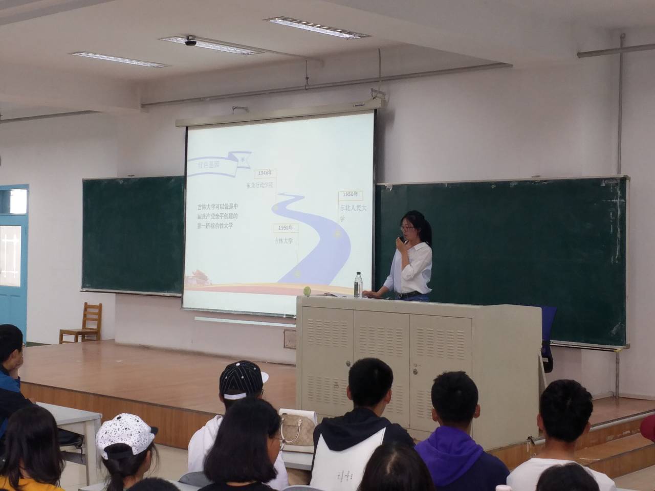 马姗姗老师以介绍 “红色革命精神”、“白求恩精神”及“黄大年精神”的“红白黄”三源色精神为主线,希望新生继承并弘扬这些优良精神,彰显新时代风采。