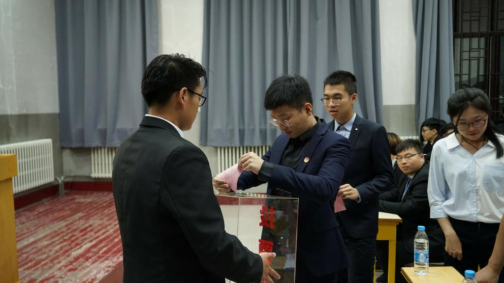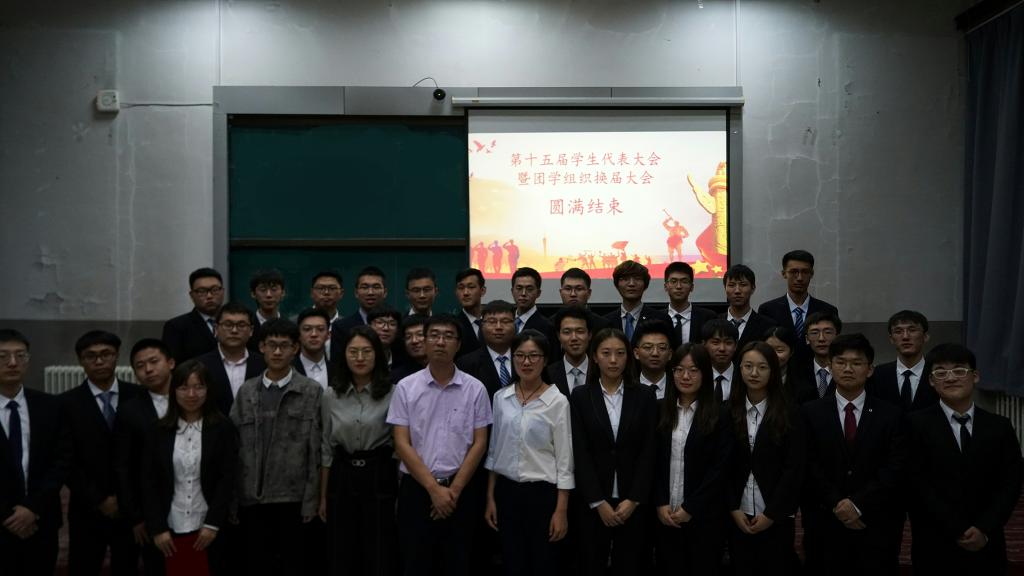 大会在与会人员合唱的中国共产主义青年团团歌中拉开了序幕。陈亦楠同学代表第十四届团学组织作了工作报告,大会审议并通过了工作报告。随后周伟老师为第十四届团学组织主要学生干部颁发了荣誉证书。荣誉证书颁发仪式结束后,第十五届团学组织主要学生干部候选人从个人履历、成绩总结和未来工作展望三个部分依次上台做竞职演讲,现场气氛十分热烈。为秉承民主、公平、公正的原则,与会老师和学生代表现场进行投票、唱票确定十五届团学组织主要干部最终人选。经过激烈角逐,大会认定2017级于淇同学当选第十五届分团委副书记,吴广栋同学当选学生会主席,仲维一同学当选社团联合会主席,大会还选举产生了第十五届团学组织各部门负责人。竞聘结束后,2018级史博日同学作为优秀干事代表发言,他表示在今后的学生工作中,一定履行团学组织成员职责,兢兢业业为同学们服务,为学院的发展贡献自己的一份力量。最后,学院党委副书记、副院长周伟老师发表总结讲话。他高度肯定了第十四届团学组织成员的工作成绩,并对新当选的团学组织主要学生干部提出了殷切希望和明确要求,希望学院团学组织成为团结一致、甘于奉献的优秀集体。
