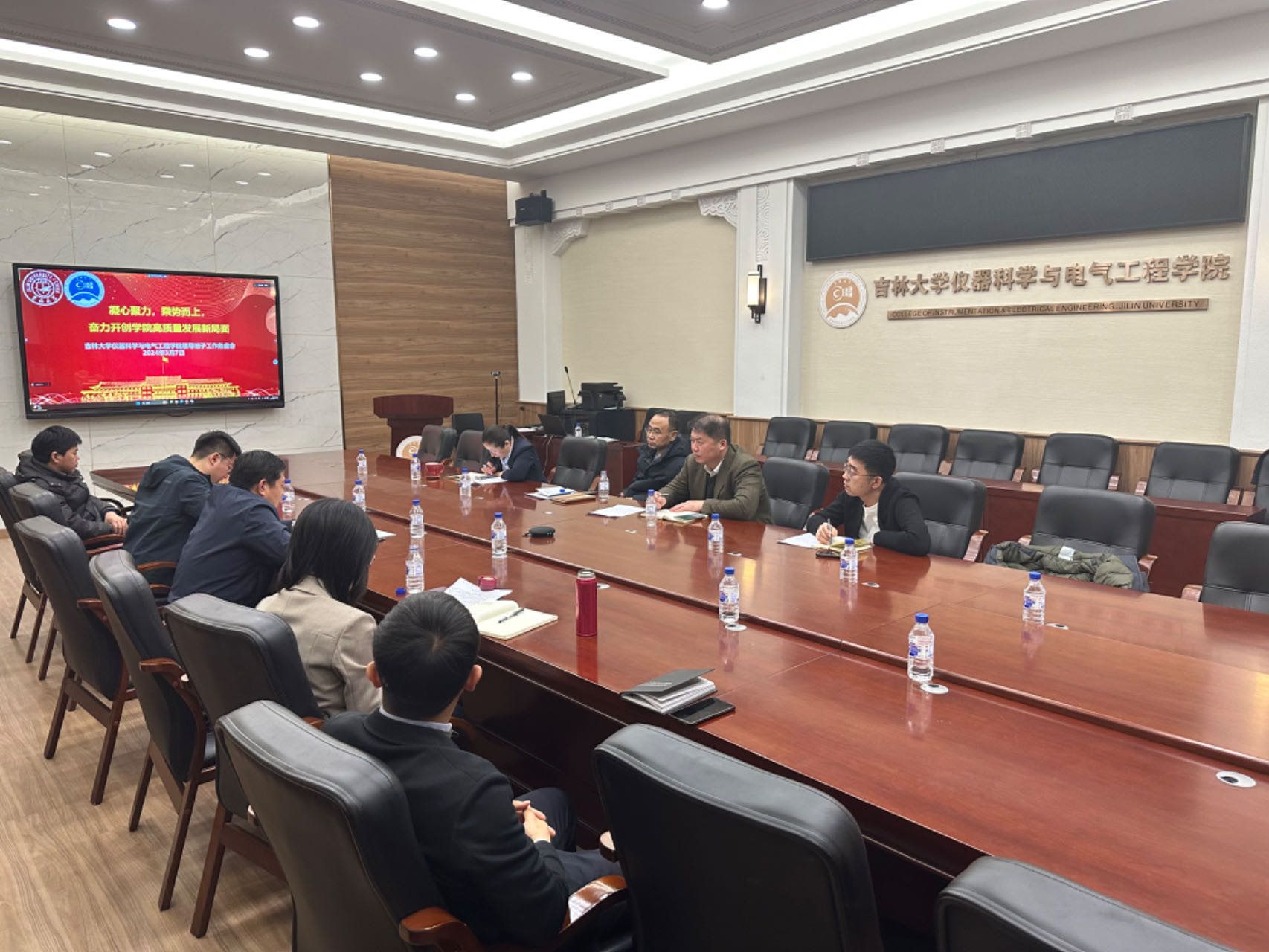 于地质宫330报告厅召开了2024年领导班子工作务虚会,学院领导班子全体成员参加了会议。本次会议由学院党委书记邱增凯同志主持,学校党建工作联络员陈炳伟同志到会指导。