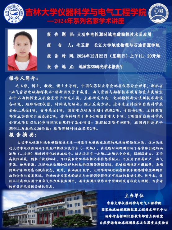 女同av 2024年系列名家学术讲座——毛玉蓉 长江大学地球物理与石油资源学院